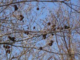 【左】ハンノキの球果。