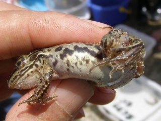 【中】ダルマガエルの足は短いです。ダルマガエルは愛知県では準絶滅危惧種です。(環境省では絶滅危惧U類となっています