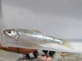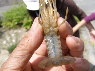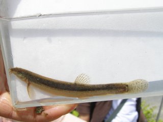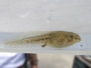 【左】知多には比較的多いダルマガエル  【右】アユが遡上していました。