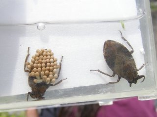 【中】コオイムシ。お父さんが卵をおんぶしています。