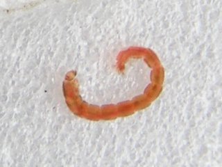 【右】ユスリカの仲間の幼虫。アカムシともいいます。