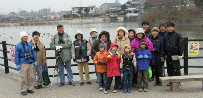 地域文化センター近くの田んぼや畑にいる鳥を観察しながら、馬池まで行ったところで雪が降ってきました。馬池には多くのカもが羽を休めており、奥の芦の中にはスズメの大群も見られました。雪が止む様子も無く本降りになり出したので、雪を楽しみながら、センターに戻りバードウォチングのビデオを見て今日見られた鳥も確認できたし、野鳥について学びました。最後に取り合わせをして解散いたしました。記:山田(絹)