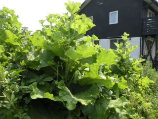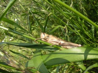 【左】ゴボウの花芽が伸びてきました。 【右】冬越ししたツチイナゴの成虫