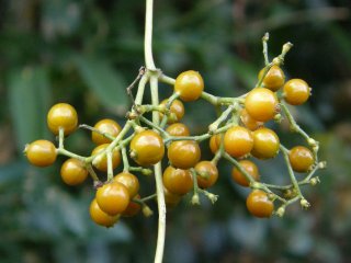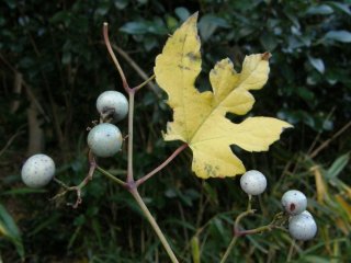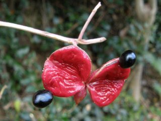 【中】ゴンズイ、黒い種子には果肉がないので栄養分がありませんが鳥に食べていただいています。省エネ植物?