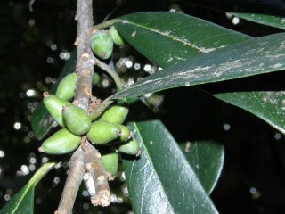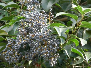 【左】果実が丸く、たくさん実をつけるトウネズミモチ。