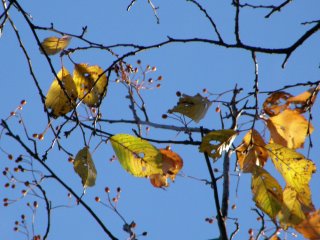 ウグイス、メジロ、エナガ、シジュウカラ、シロハラ、セキレイ、ヒヨドリ、大きな巣(池のそば)