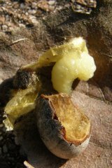 【右】繭の中にいた蛹(サナギ)(左)、寄生蜂の蛹。
