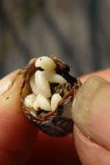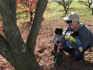 天気もよく、参加者のかわいい子どもも大活躍。落ち葉を抱えて大事そうに運んでいたり、土手を元気よく登って行ったり・・・・・・。ゆっくり歩いて、ゆっくり観察できた。そして、あっという間に時間も過ぎた。さいごに、イラガのまゆをつくった幼虫を試食する人もあったことを記録しておく。(中井康)