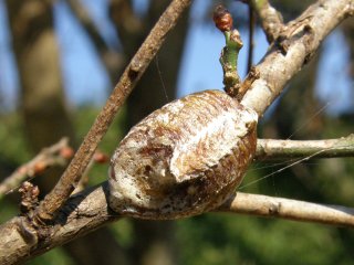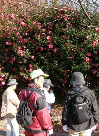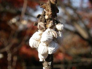 サザンカとツバキの仲間の違い、ジョロウグモのめすの小さめの個体、イセリアかいがらむし、イラガのまゆ(寄生されたもの、そうでないもの)、イラガのまゆの模様のいろいろ、木のくぼみにヤニサシガメの越冬集団、スズバチの巣、ウメの木についたクモの卵、一輪の梅の花、キクラゲの仲間、ビワの花のにおい、ノブドウのつると、虫えいなどを観察。