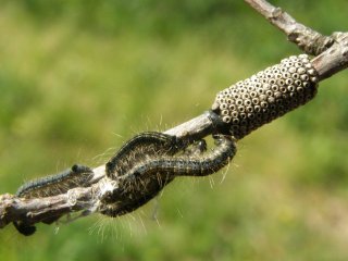 【左】オビカレハの卵の抜け殻と幼虫  【右】スイバの花