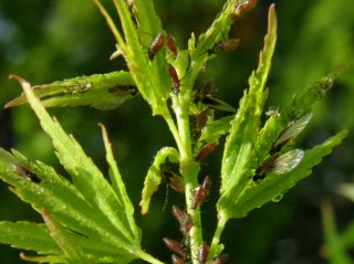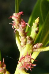 【右】左、ヤマモモの雌花。右、雄花。