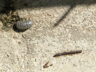 【左】側溝の中でダンゴムシとヤスデの仲間が見られました。
