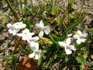 【左】越冬したツチイナゴ  【右】アリアケスミレ