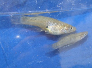 【右】カダヤシの♀上と♂下。