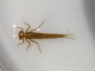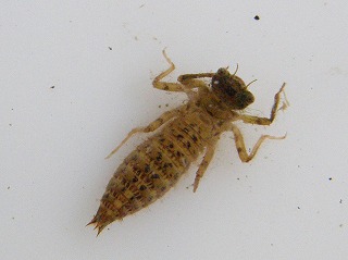 コオイムシの雄と雌、アジアイトトンボ、シオカラトンボ、ヤンマの仲間、アメンボウ、アメリカミズアブ?