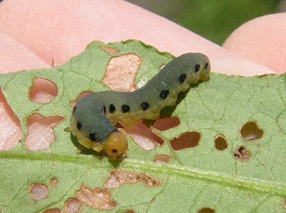 【右】ハグロハバチの幼虫