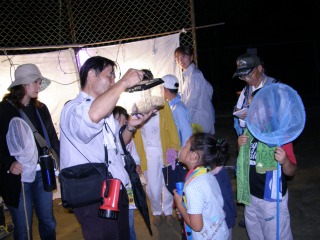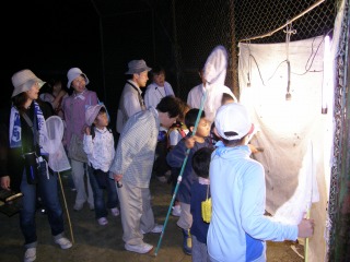 【行事名】 灯火に集まる虫の観察とナイトハイクで生き物探し