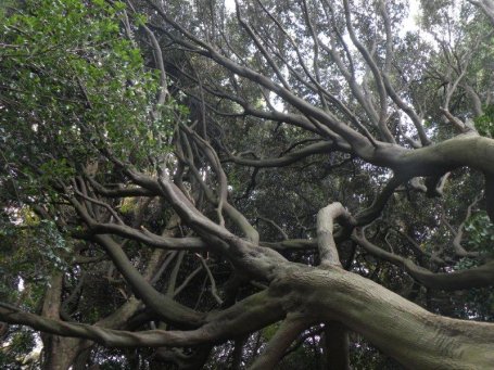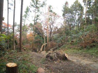 【左】寄れかかって倒れた椎の木