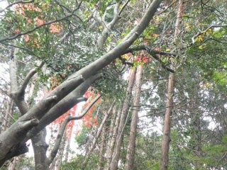 カエデの仲間、シイ、イヌビワ、テイカカズラ、スギ、ヒノキなど