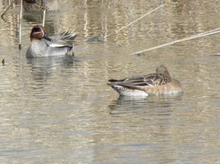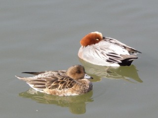 【左】地域文化センターの庭で観察 【右】ヒドリガモのカップル