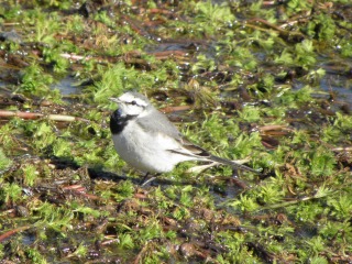 【中】オオフサモ(外来)の島の上にハクセキレイ