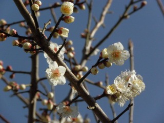ウメ、ヤブツバキ、カンザキスイセン、ホトケノザ