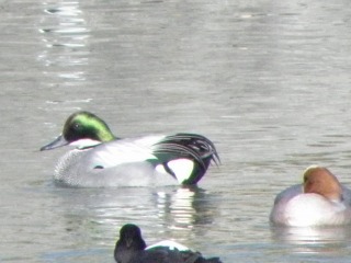 【左】馬池で観察 【右】ナポレオンハットのヨシガモ
