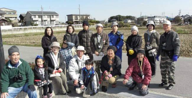 欠席者が多く、参加者より会員のほうが多い観察会になりました。暖かい日差しの中、散歩気分で出発。田んぼの中のケリや木の上にとまったモズ、池にはヒドリガモやハシビロガモなど見ることができました。カワセミのつがい(?)も池の上を飛び、昨年に続き今年も同じ場所でカワセミを見ることができて嬉しかったです。最後子どもがトイレを探して早く切り上げてしまったのが少し残念。今時は神社のトイレにも鍵がかけられてしまうんですね。(記・石井)