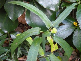 ナンキンハゼ、トウネズミモチ、ホシダ、オニヤブソテツ、イノモノコンギク、フユサンゴ、ノハカタカラクサ、モッコク、モトノキ、モミジの仲間、テイカカズラ、マンリョウ、センリョウ、ミミズバイ、ハリガネワラビ、ベニシダ、シャシャンボ、サカキ、カナメモチ、スダジイ、ムクノキ、クロガネモチ、コシダ、イヌホウズキ、ツルグミ、ノブドウ、ツワブキ