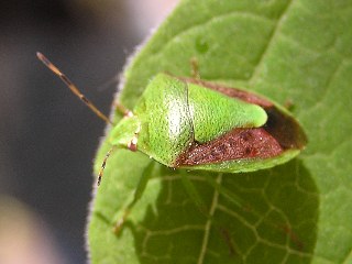 【右】チャバネアオカメムシで果樹に被害を与えます。