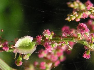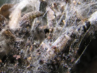 【右】ネズミモチに糸を出して集団でいました。何でしょう。