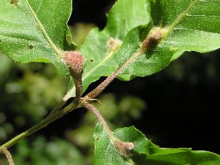 【右】ケヤキハフクロフシ(ケヤキヒトスジワタムシ=ケヤキフシアブラムシ)ケヤキの葉にアブラムシが作った虫こぶでしょうか。