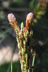 【右】松の雄花(左)雌花(右)。2年かかって実ができます。