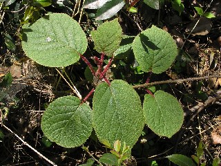 【中】最近、各所でキウイフルーツの自生が見られるようになりました。鳥さんの仕業でしょうか。