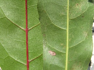 【中】左がネズミモチ。右がトウネズミモチです。トウネズミモチは生長がよくたくさん種子を着け鳥が食べて散布するため増えています。