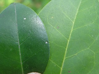 【左】よく似た葉です。左がホルトノキで右がヤマモモです。