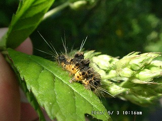 【左】ヒサカキに良く付くホタルガの幼虫です。