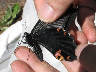 【左】クロアゲハが飛来しました。ミカンの仲間を食べています。