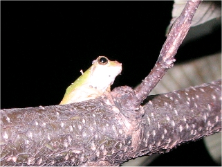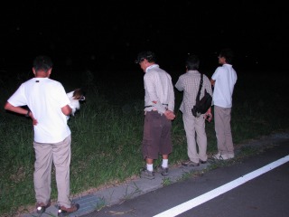 【左】おしゃべりを止め、静かにして聴いているところ…エンマコオロギの声が大きい