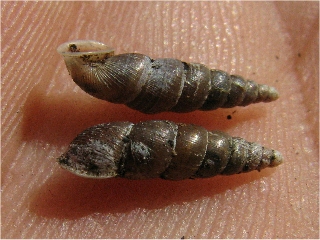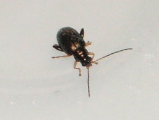 【左】サメハダツブノミハムシ?(体長2mm。林の陽だまりで飛んでいました。アカメガシワの葉を食べるそうです)