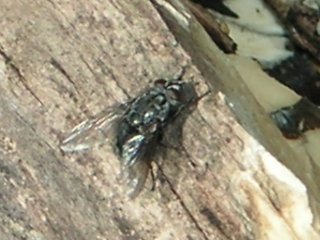 【右】オオクロバエ(冬の陽だまりにはどこでも見ます。他にも何種類かハエを見ました)