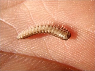 【左&中】ユミアシゴミムシダマシの幼虫 と 成虫 【右】キマワリの幼虫