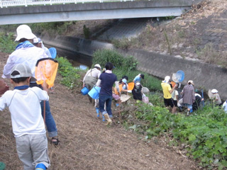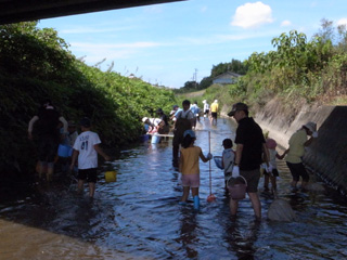 このところ毎年観察会を行っている矢勝川ですが、水の色こそ相変わらずやや茶色みを帯びていて汚れた感じがしますが、川底などは随分きれいになって、以前よりは気持ちよく川の中で活動できるようになったと思います。