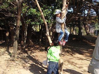 解散後、子どもたちは、始めのころ遊んだ木登りの場所に行ってずーと木登り遊びをしていたようです。