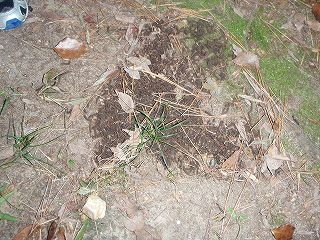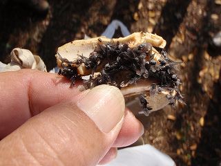 【左】薄暗い散策路の真ん中で集合していたもの 【中】同左拡大 【右】同左→手のひらにのせて拡大