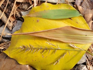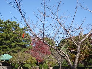 【左】“最後の一葉”中央左の赤い葉っぱ 【中・右】始末の悪いくっつき虫…ササクサ(2010.12.26撮影)