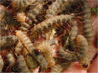 ・毛虫のかたまり…散策路の真ん中に集中していた