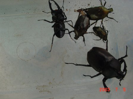 【左】カブトを見つけたよ。   【右】ノコギリクワガタも見つかったよ。