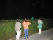 今年のヒメボタルの出具合は最高!あたりの夜でした。例年に比べ、ヒメボタルの出現が早く、ピークも過ぎてしまったらどうしようと思っていたところ、週の初めから台風が近づいて毎日 雨 雨 雨。やっと晴れたのが金曜日で、その夜の観察会でした。9時半集合で、目的地まででかけるとおよそ10時。いつもは見られない土手にもホタルが見られ、ヒメボタルを15年ほど見つづけている桑原さんも「こんな年は初めて。」という程よく見られました。ホタルたちの集団デートが爆発した感じ。雨に阻まれていた何日かぶんのデートが一気に花咲いたといった感じでした。10時半を過ぎると、土手全体や、今までこんなところで光っているのを見たことないといったところにまでホタルが群生して、クリスマスのイリュミネーション顔負けといったところでした。