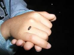 【左】手乗りホタルです。ちっちゃいですね。採ってもすぐ死んでしまいます。野原でそっと観察しましょう。